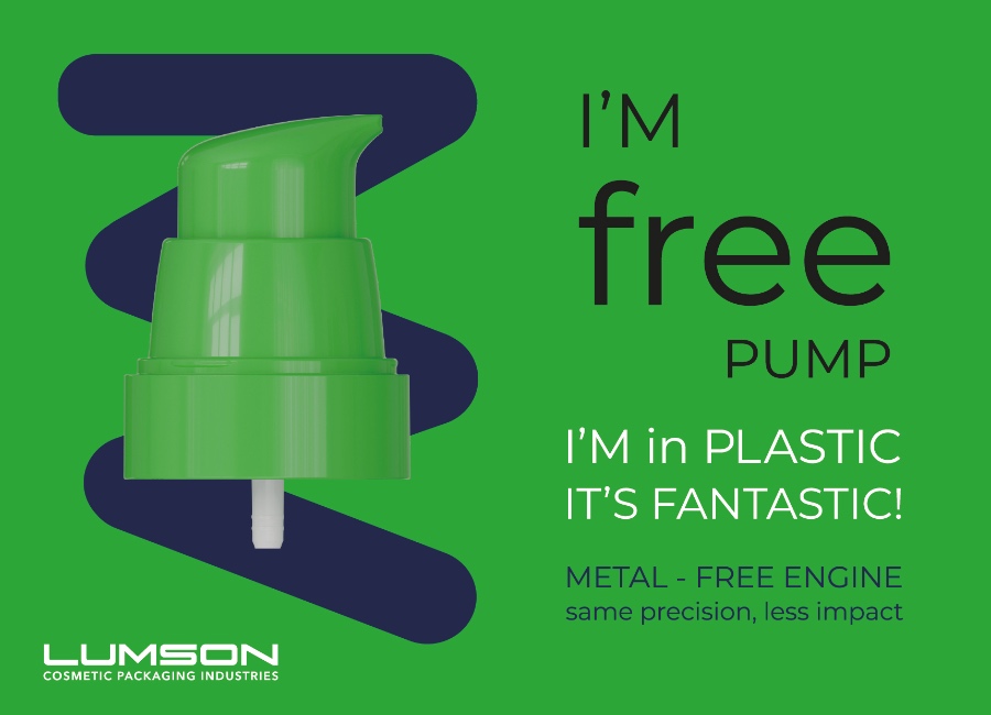 Caperganica (Cr) – Lumson, azienda italiana specializzata in packaging per la cosmetica, presenta Free, la nuova pompa metal-free che coniuga performance d’eccellenza e sostenibilità ambientale.