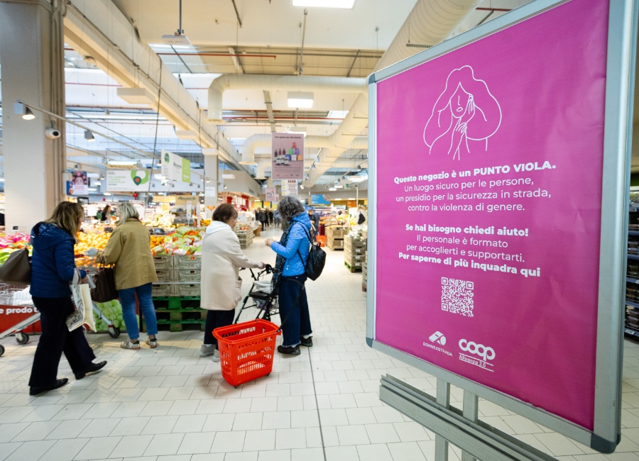 Bologna – Coop Alleanza 3.0 trasforma 39 dei suoi negozi in ‘Punti Viola’, entrando nella rete nazionale di spazi sicuri in partnership con l’Associazione DonnexStrada. I punti vendita, dislocati tra Friuli Venezia Giulia, Lombardia, Emilia-Romagna, Marche, Abruzzo e Puglia, offrono accoglienza e supporto a chi si trova in situazione di pericolo.