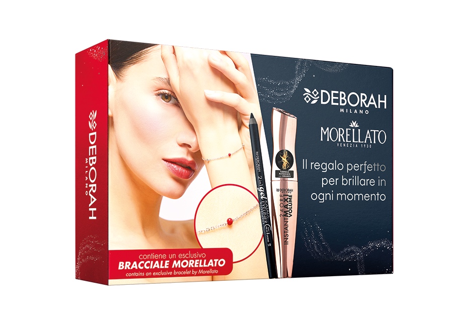 A completare l’offerta, due proposte Deborah Milano Formula Pura, la linea dedicata al make-up clean con ingredienti di origine naturale. I due kit esclusivi includono il primo Mascara Volume & Forza Bio, Matita Occhi Bio e collana punto luce; il secondo con Mascara Volume & Care Bio, Smalto Multifunzione e bracciale Morellato. Perfetti anche per pelli sensibili, offrono look naturali senza rinunciare a performance e durata.