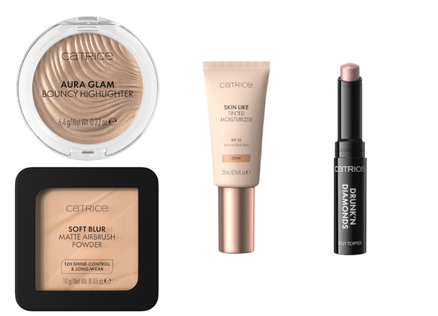 Per il viso, Catrice propone Velvet Pudding Blurring Blush, un blush mousse effetto blur che leviga pori e offre colore modulabile; Aqua Splash Grip Fissante Make-up, uno spray fissante con effetto grip arricchito con aloe vera e glicerina; e Ten!sational 10 in 1 Spray Viso Multitasking, che combina idratazione, controllo dell’oleosità e prolungamento della tenuta del make-up. La linea viso include inoltre Soft Blur Blush in Polvere, un blush opaco con il 90% di ingredienti di origine naturale; Aura Glam Bouncy Illuminante Viso, un illuminante cream-to-powder multiuso; Skin Like Crema Idratante Colorata con SPF 30 e idratazione 24 ore; Soft Blur Matte Airbrush Cipria Compatta per un incarnato opacizzato e uniforme; Diamond Haze Illuminante Jelly in Stick con texture bouncy a base d’acqua; e Sculpt & Charm Contour Stick Viso, un contour stick cremoso per definizione immediata e facile sfumabilità.