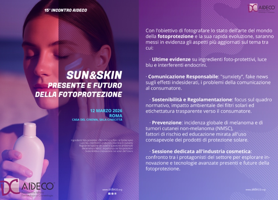 Attraverso questa iniziativa, AIDECO intende offrire una panoramica completa, attuale e multidisciplinare sulla fotoprotezione, promuovendo consapevolezza, prevenzione e dialogo tra scienza e mercato.